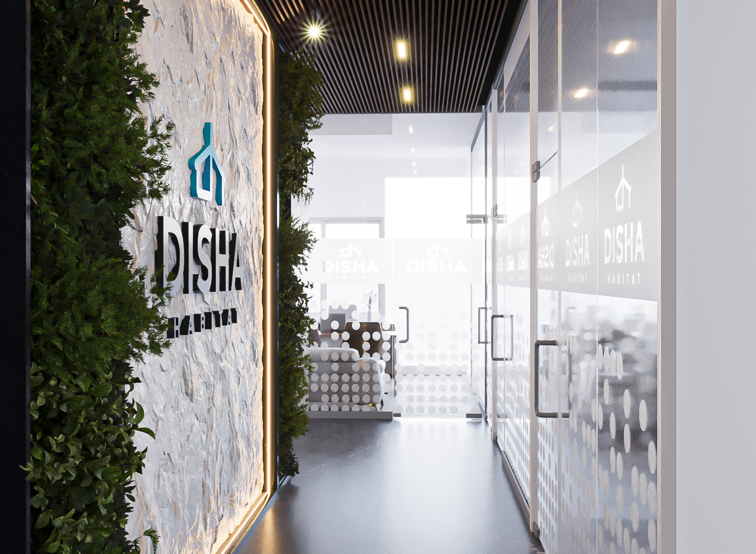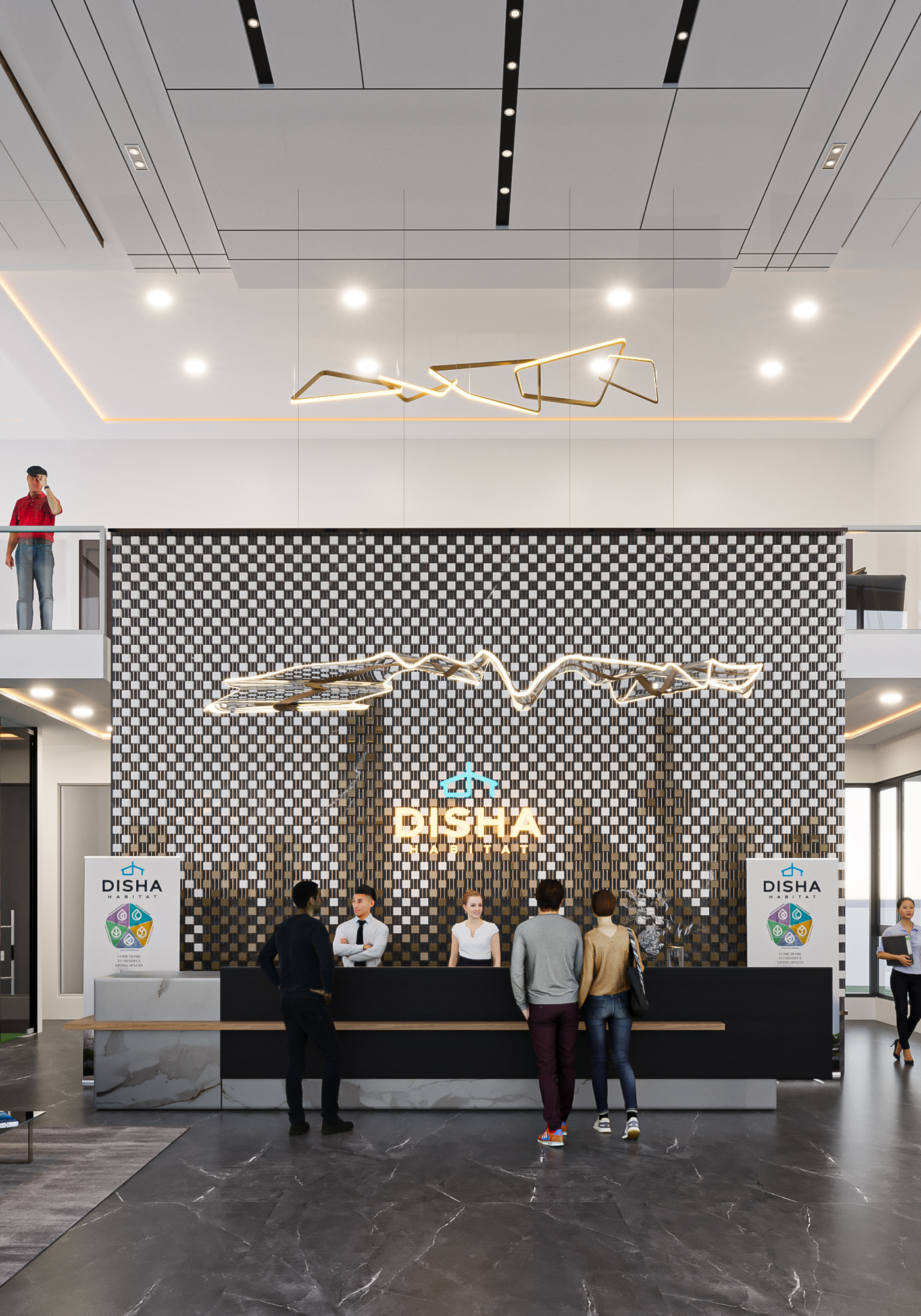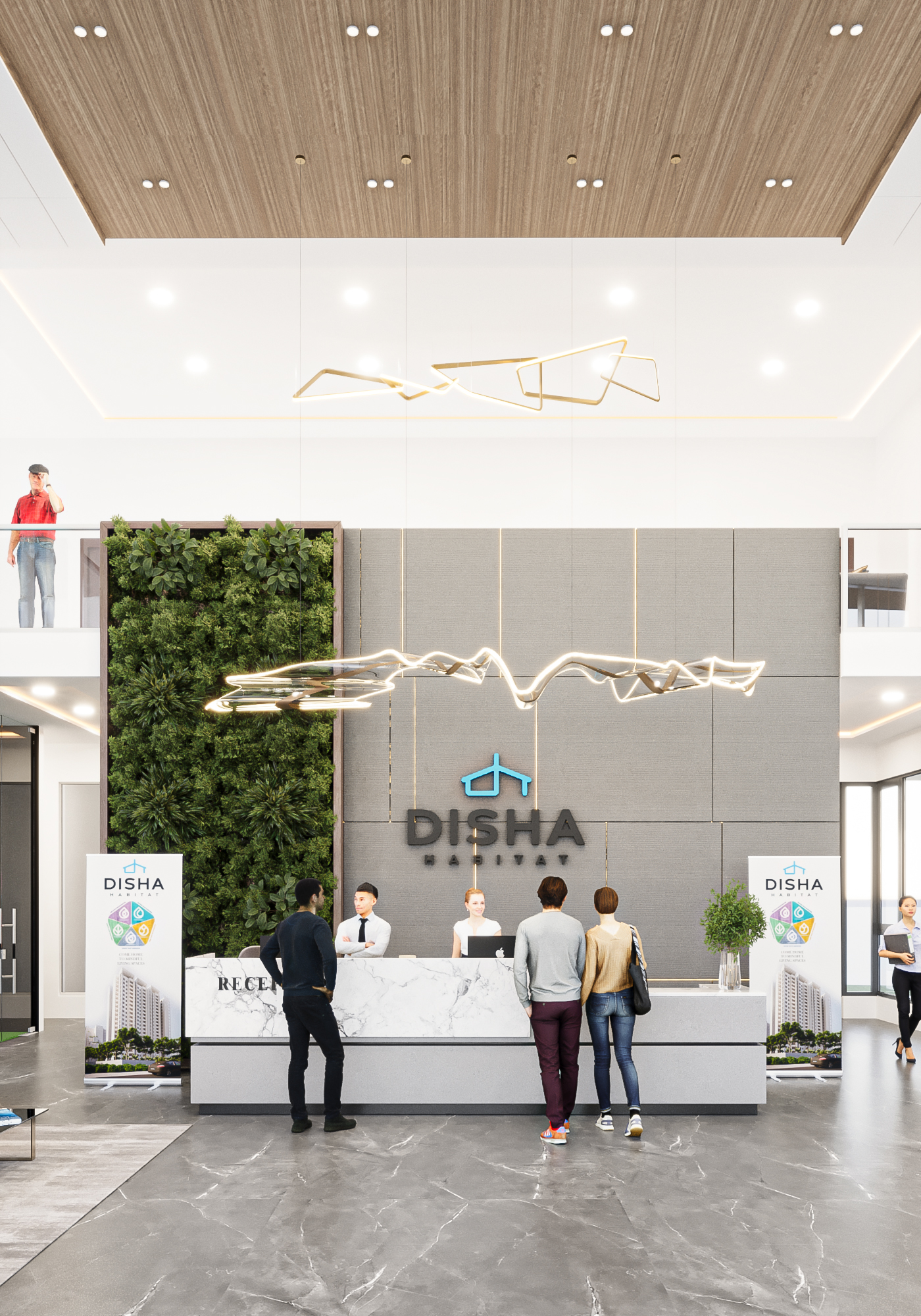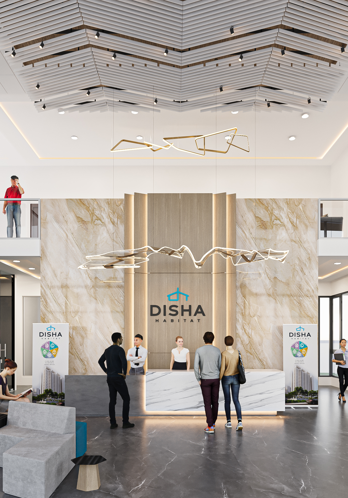 Disha Marketing Office is designed for Disha Habitat, located in Varthur, Bangalore. The built-up area (BUA) is 734.70 Sqm (7908.4 Sft). It is an interior project currently marked as on-going.